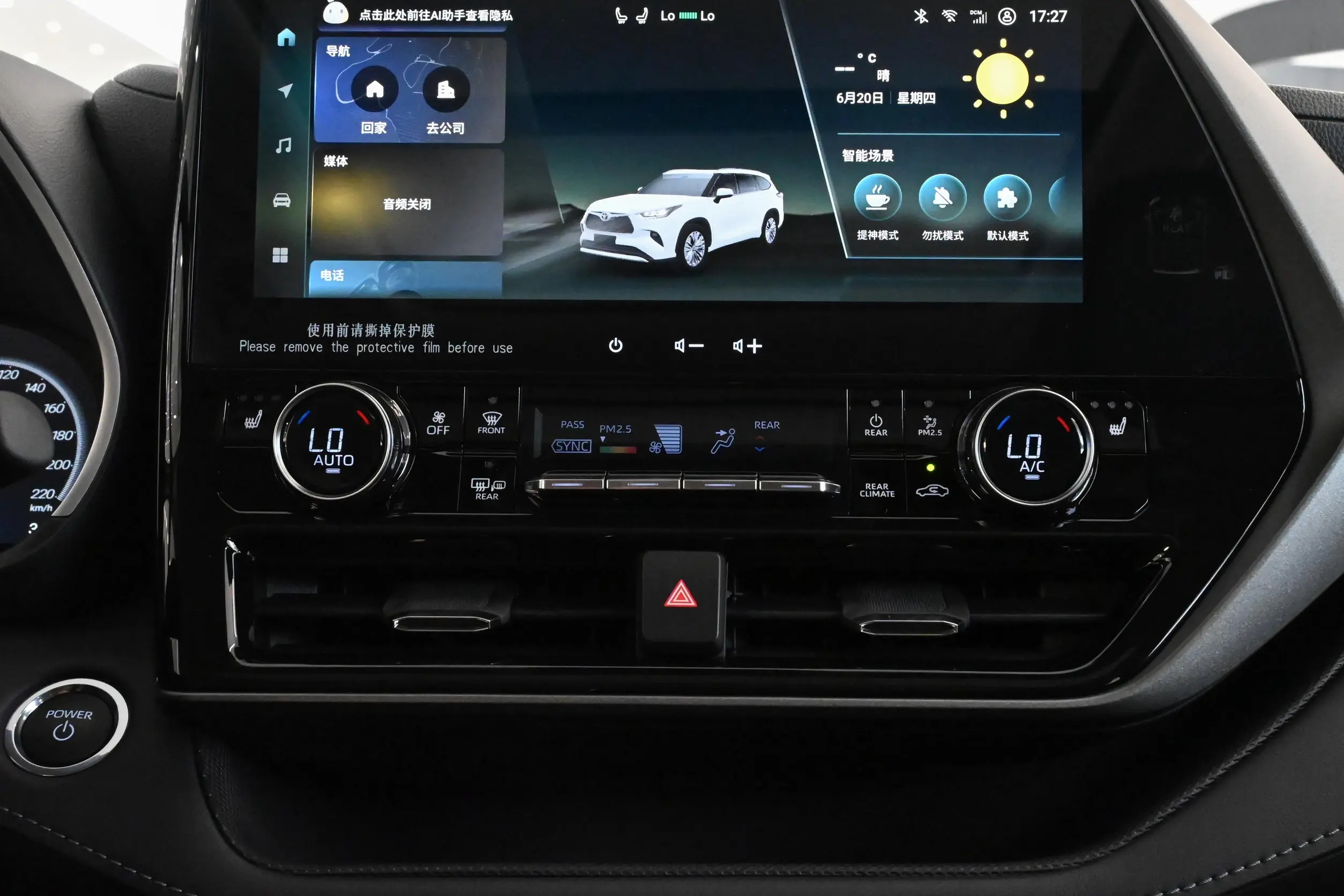 来到车内,汉兰达的内饰显然也不会给人带来多大的惊喜,依然是丰田给人一贯的传统印象,以实用家用为主,并没有花里胡哨的科技配置。其中,全系标配12.3英寸全液晶仪表,中控屏的尺寸低配只有10.25英寸,高配升级到12.3英寸。都2025年了,连屏幕都要进行区别对待,这一点也就丰田能做出来。不过好在全系标配了L2级驾驶辅助,配备的全速自适应巡航在高速上使用还是比较方便的,而且像主动刹车、车道偏离预警这些功能也非常成熟,用起来让人放心。